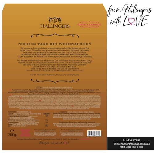 Spezifikation: Hallingers® Adventskalender – Pralinen ohne Alkohol (300g)