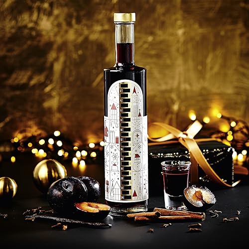 Spezifikation: Wajos Adventskalender Flasche 500 ml: Glasflasche gefüllt mit Gewürzpflaumen Likör, der etwas andere Adventskalender als Alternative zum Diy Adventskalender